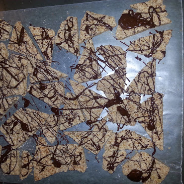 Scrape dough into prepared baking dish; use a piece of parchment to press dough into an even layer. Sprinkle with half of the raw sugar. Bake for about 30 minutes, until firm and golden around the edges. Immediately score (make shallow cuts in dough) into triangles. Cool completely in dish on a rack, then carefully lift shortbread out of dish and place on a cutting board; slice with a sharp knife. Drizzle with melted chocolate and top with remaining sugar. Once chocolate has hardened, store at room temperature in an airtight container.