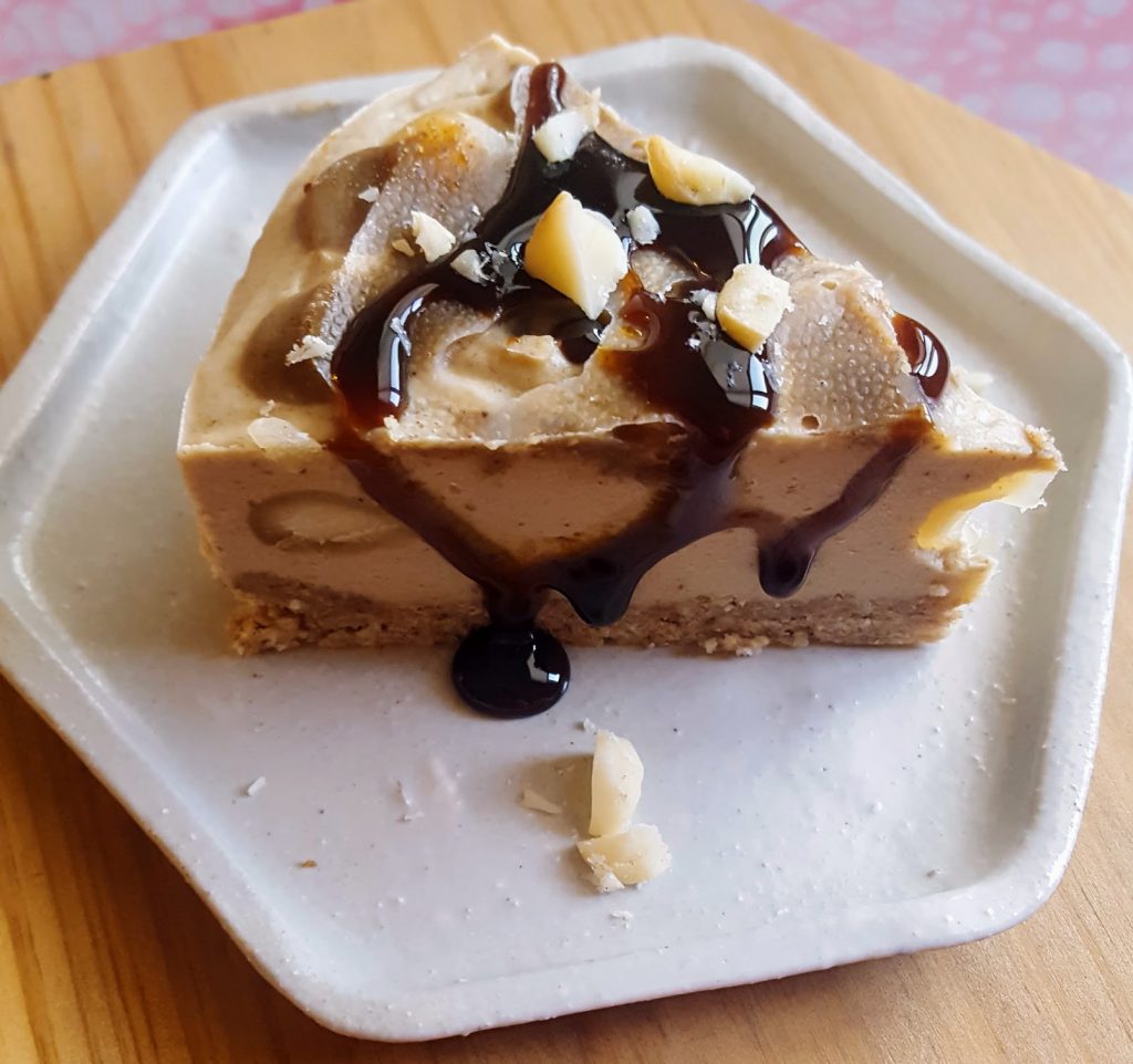 This means no more melting cheesecake! This beauty stays nice and firm at room temperature just like the cream cheese version, which has been a struggle up into this point. The taste is incredibly similar and I can relax and no longer worry about the constant fridge to freezer action to ensure the proper consistency. Actually, when. using cacao butter, there’s no need to freeze at all =)