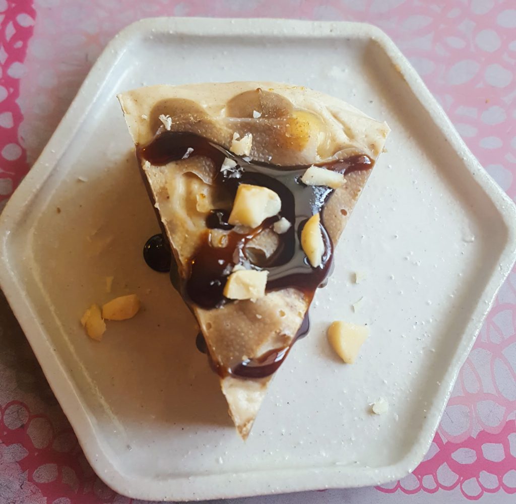 Caramel: 2 tbsp coconut nectar or maple syrup, 1 tbsp melted coconut butter, 1 tbsp creamy nut butter, 1/4 tsp pink sea salt, all whisked together until smooth.