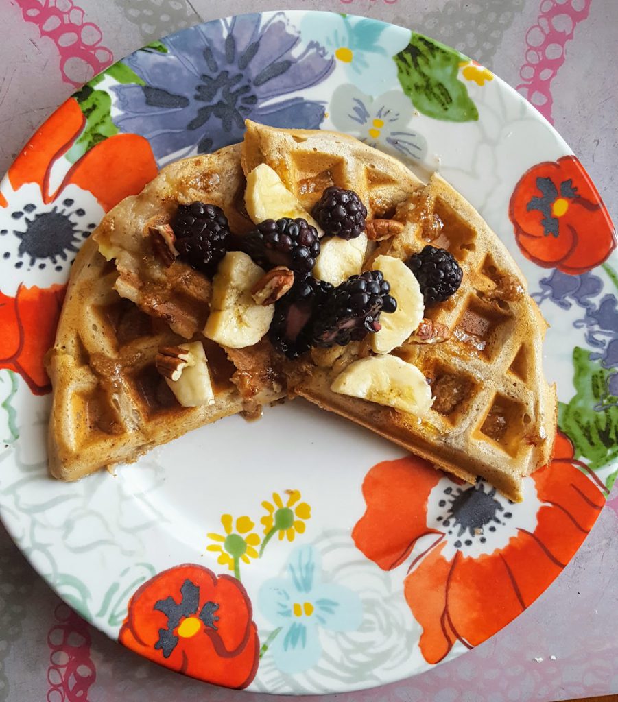 I have gotten pretty good at operating the gadget, but what I am better at is making a wickedly delicious batter that’s healthy, and fluffy, and all the things we crave in a waffle.
