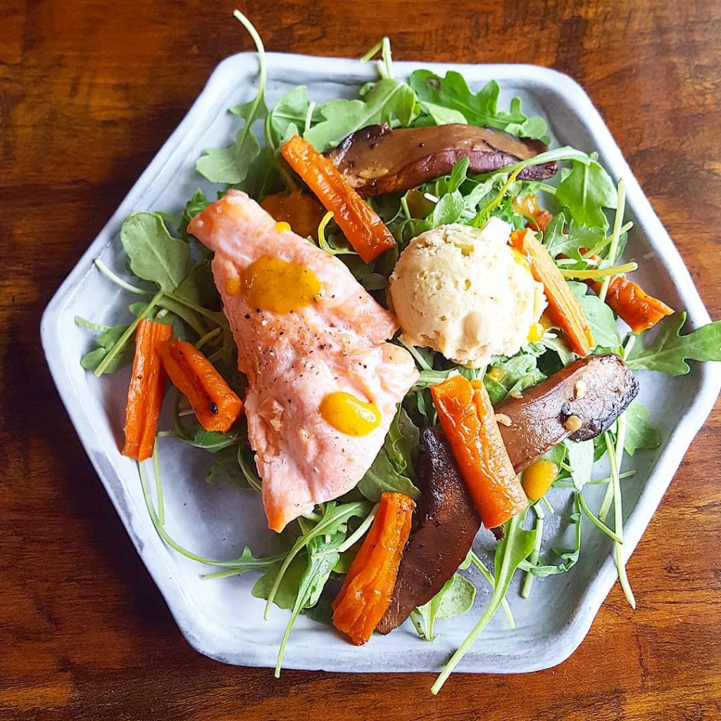 My preferred hummus also involves roasting the garlic first and swapping tahini for almond butter. Both of these steps prevent the bitter flavor that is common in hummus. I also use orange instead of lemon juice and I use just enough oil to add flavor. Speaking of which, high quality extra-virgin olive oil is a must here 😉
