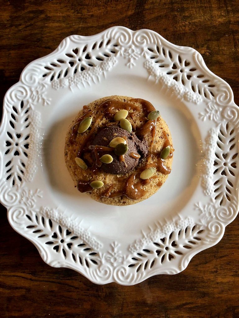 Before serving top with nut butter, frosting, or powdered sugar. I used brownie batter dessert hummus, date nectar, and almond butter 😉
