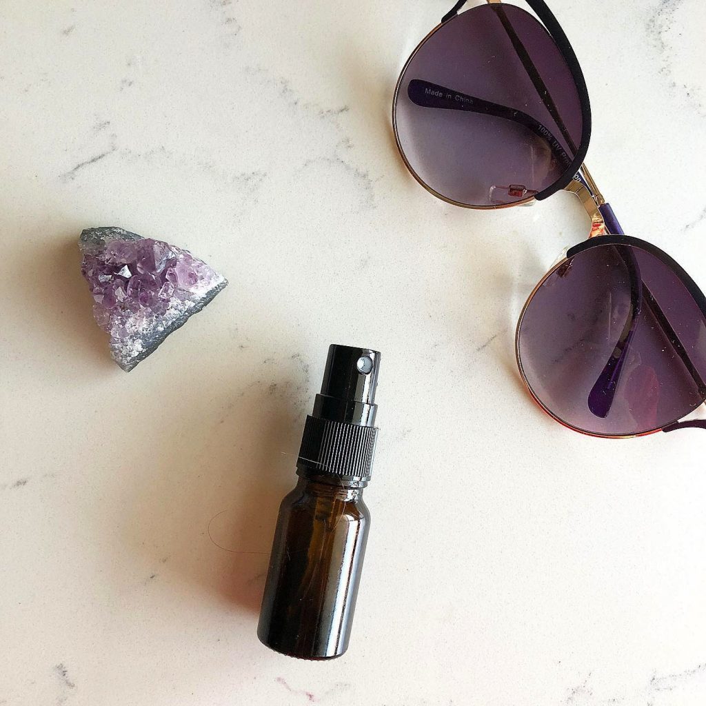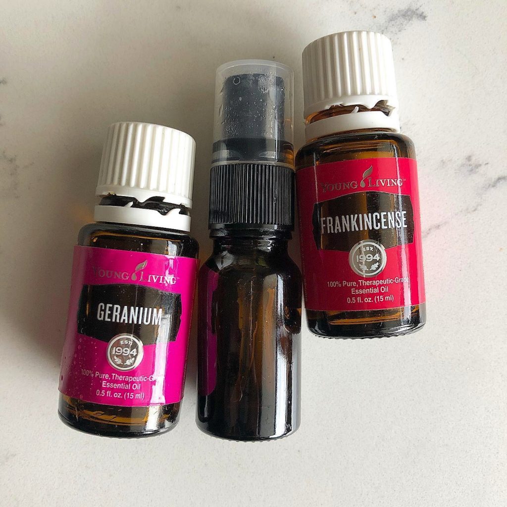 You simple need a small glass spray bottle, a few carrier oils, Vitamin E oil for extra soothing power + therepeutic grade essential oils (I use Young Living) that support skin health and smell beyond dreamy!