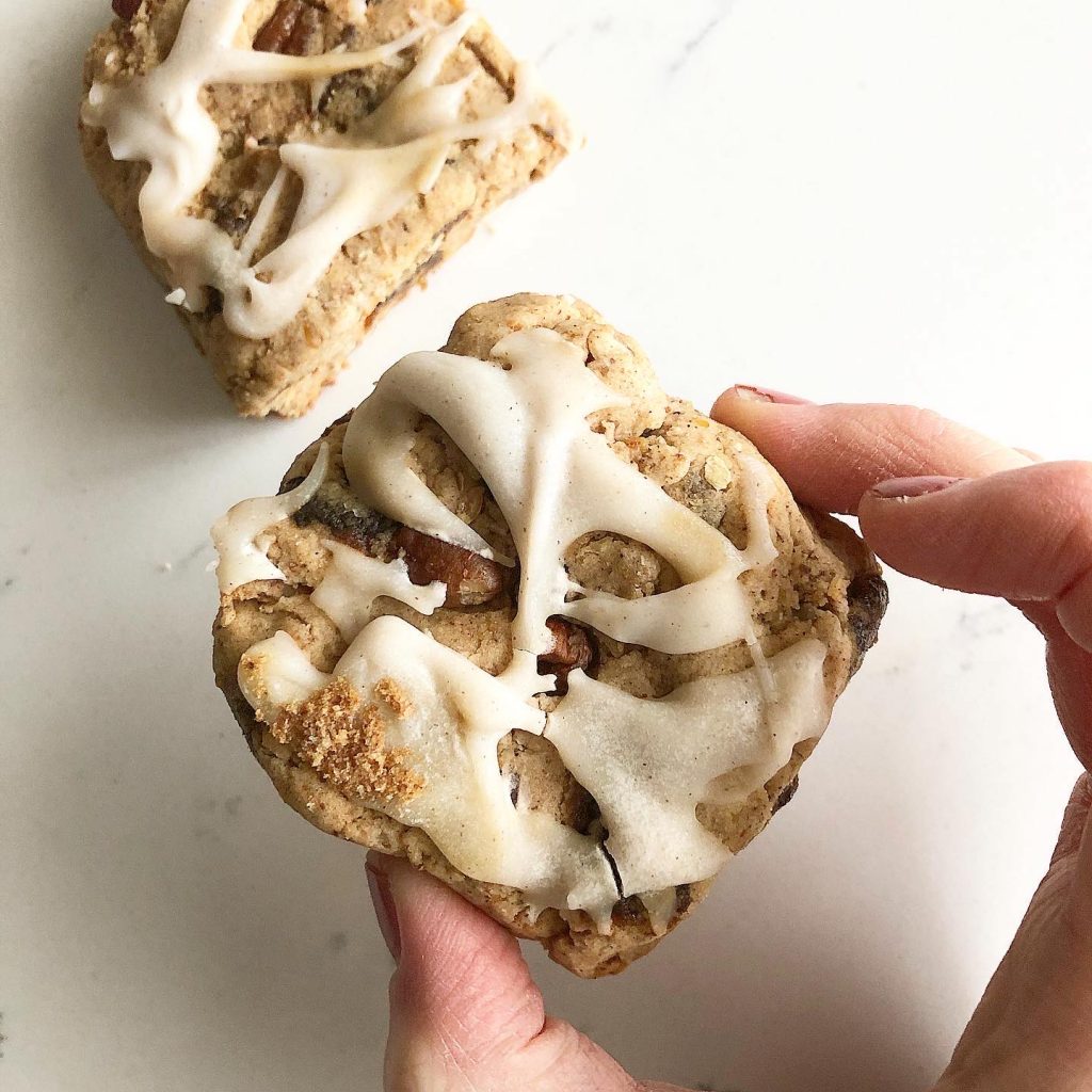 The mouthfeel of these is seriously unreal! Buttery, lightly sweet with a maple-undertone, and full of fragrant pecans and my favorite dried fruit – swoon!