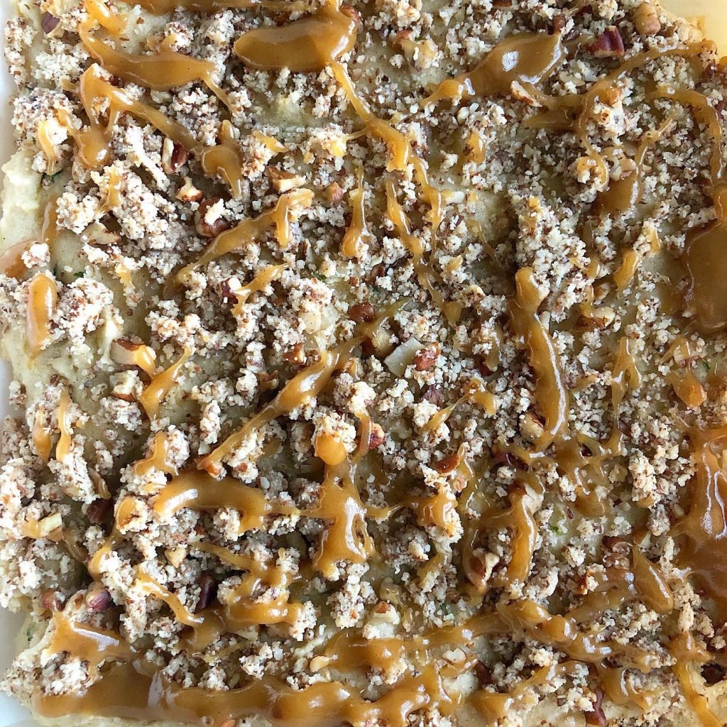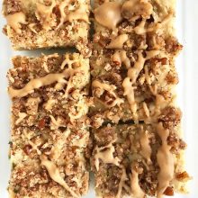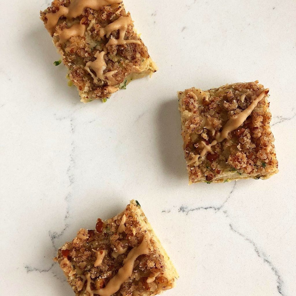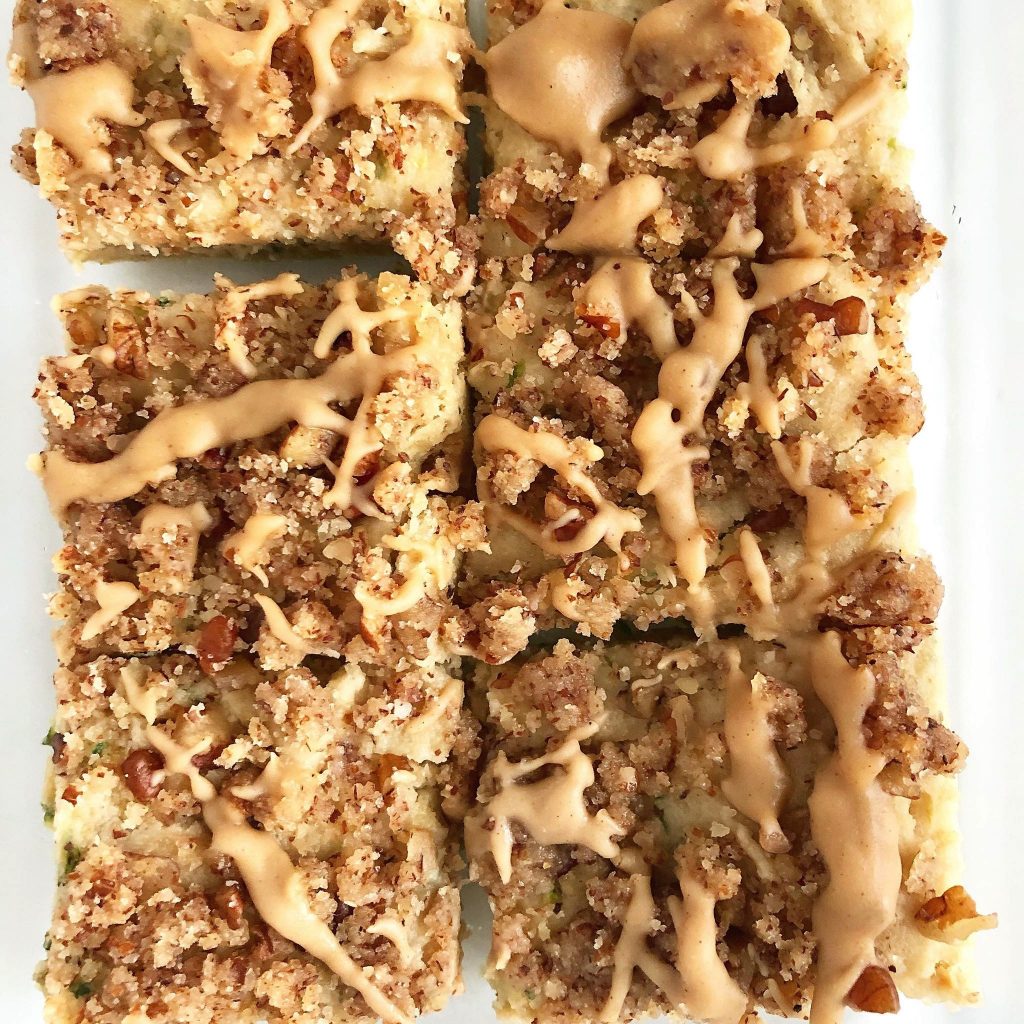 I decided to put a summer spin on the usual indulgent, comforting, classic coffee cake with the addition of zucchini! Made with coconut butter instead of dairy butter or oil, this treat has the same nostalgic scent and taste as the classic but with whole food ingredients. Of course the best part is the buttery, cinnamon-heavy streusel and I find that almond meal and maple syrup are an amazing pair for creating the perfect topping!