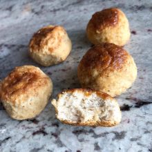 Brush with vegan butter or oil, and top with coarse salt or cinnamon sugar.